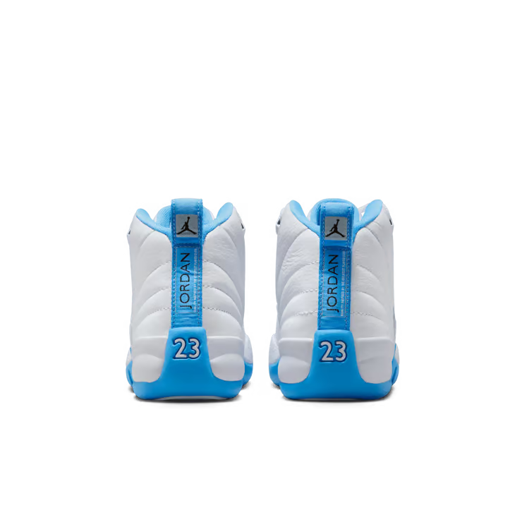 The sleek colorway — sharp white base contrasted with University Blue accents and metallic silver detailing — gives a clean, fresh aesthetic that pairs easily with streetwear or casual outfits. Whether for hoop sessions, casual wear, or sneaker collecting, these Air Jordan 12s deliver the legendary heritage and versatile performance the brand is known for.